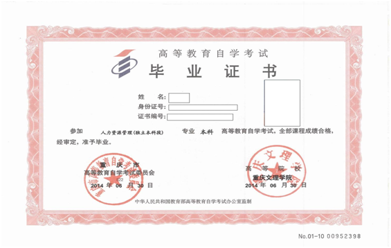 附件:高等教育自学考试第二专业、第二学位毕业证书、学位证书样本