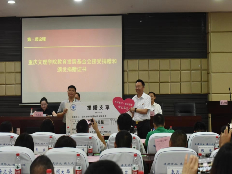 代武春经理首先代表公司党政致辞,接下来举行了隆重的爱心捐赠仪式。重庆沙坪坝区法商教育培训学校张波林董事长代表所有合作单位进行捐赠,共捐款106900元。
